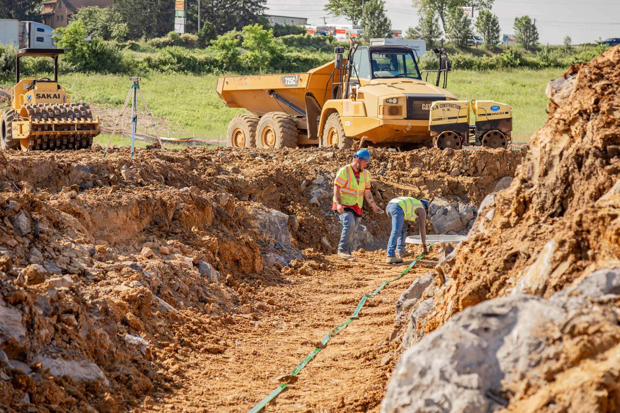 Concrete foundations, parking lots, site development, utilities, drainage, and circulation improvements coordinated with the vertical build instead of separated from it.